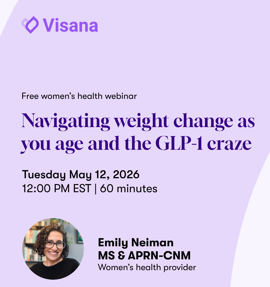 Join live for the conversation and Q&A, or register to receive the recording afterward: "Navigating weight change as you age and the GLP-1 craze," on Tuesday May 12 at 11AM hosted by Visana Health. Register now
